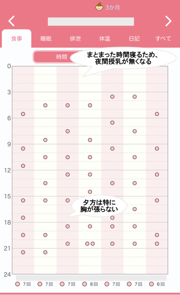 振り返ると、授乳回数が減ったためか、特に1日の授乳回数が増えてくる夕方には授乳間隔が空いても胸が張らず、明らかに母乳の量が減っているのがわかりました。