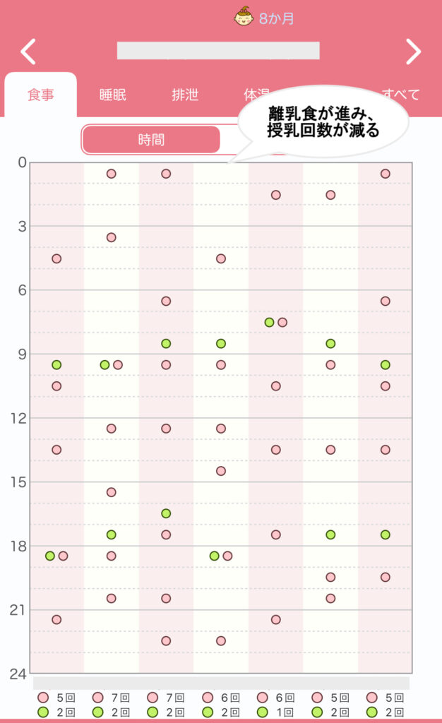 私の場合の、出産直後から生後8ヶ月までの授乳回数などをまとめました。