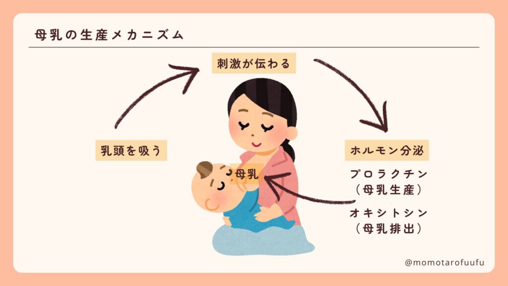 各ポイントを深掘りする前に、母乳の生産メカニズムを簡単にお伝えします。