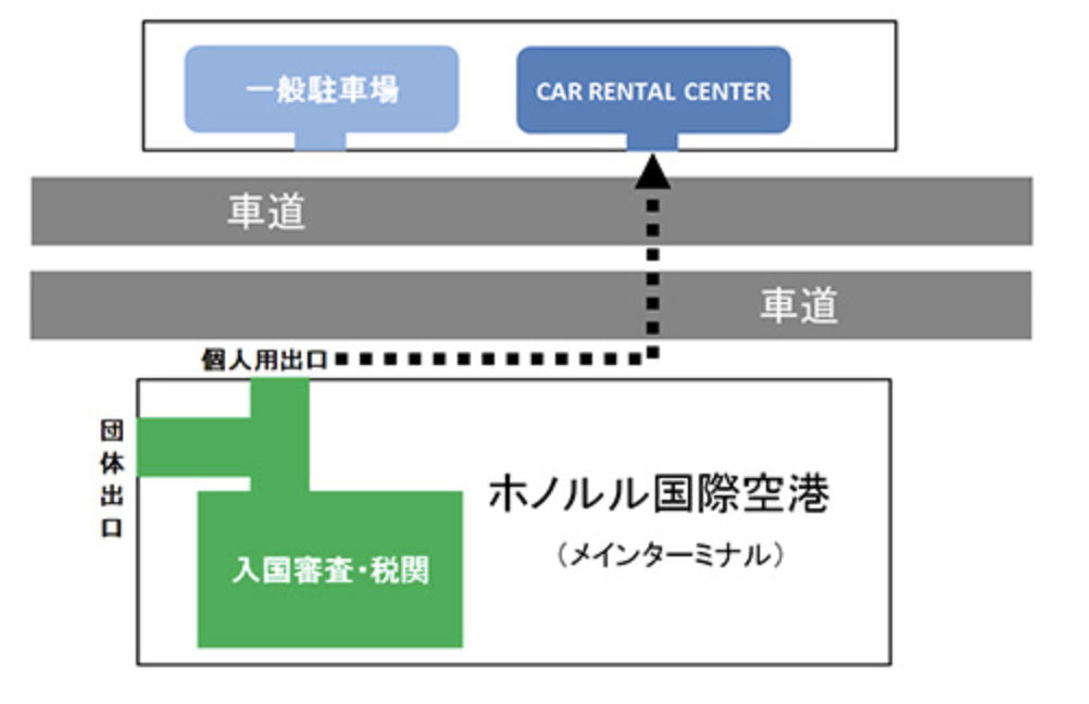 さて、ホノルルの空港ダニエル・K・イノウエ空港についてから、ピックアップ場所までの行き方を説明します。