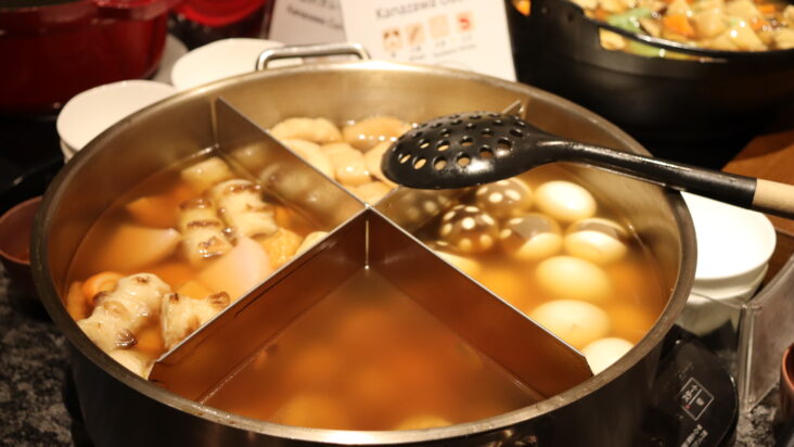0歳の娘と子連れ旅行した時に宿泊した「THE HOTEL SANRAKU KANAZAWA|ザ ホテル山楽金沢」の朝食を写真とともに紹介します!金沢名物の金沢おでん、寿司、車麩など美味しい食事を堪能できます。離乳食に使えそうな食材もあるので、子連れでの利用もおすすめです。