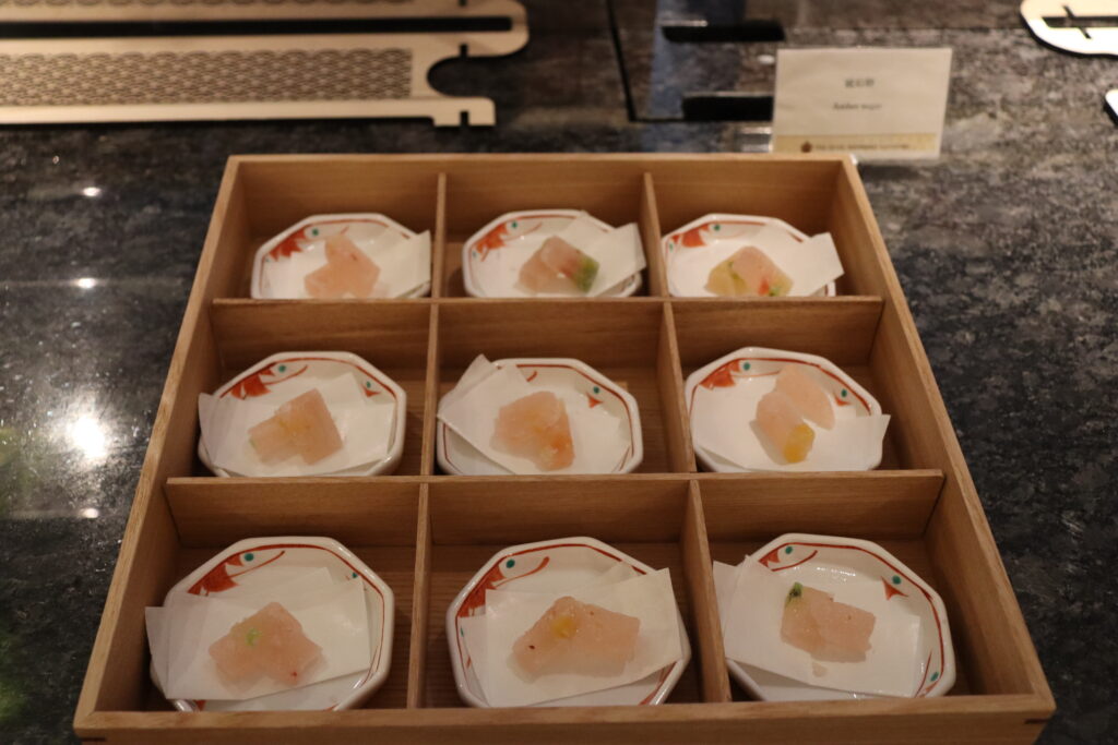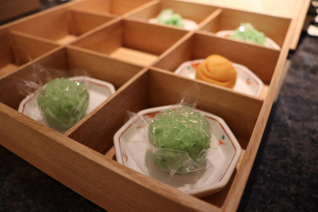 和菓子は紫陽花をモチーフにした涼しそうなものも。