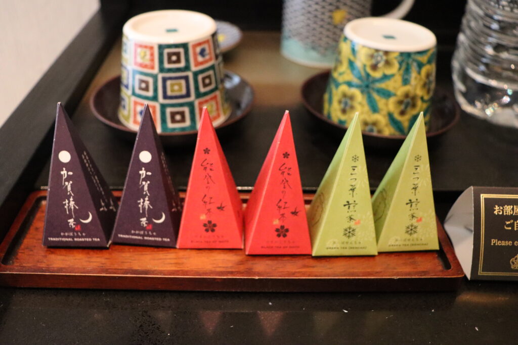 お茶は、加賀棒茶、紅茶、煎茶が置いてあります。