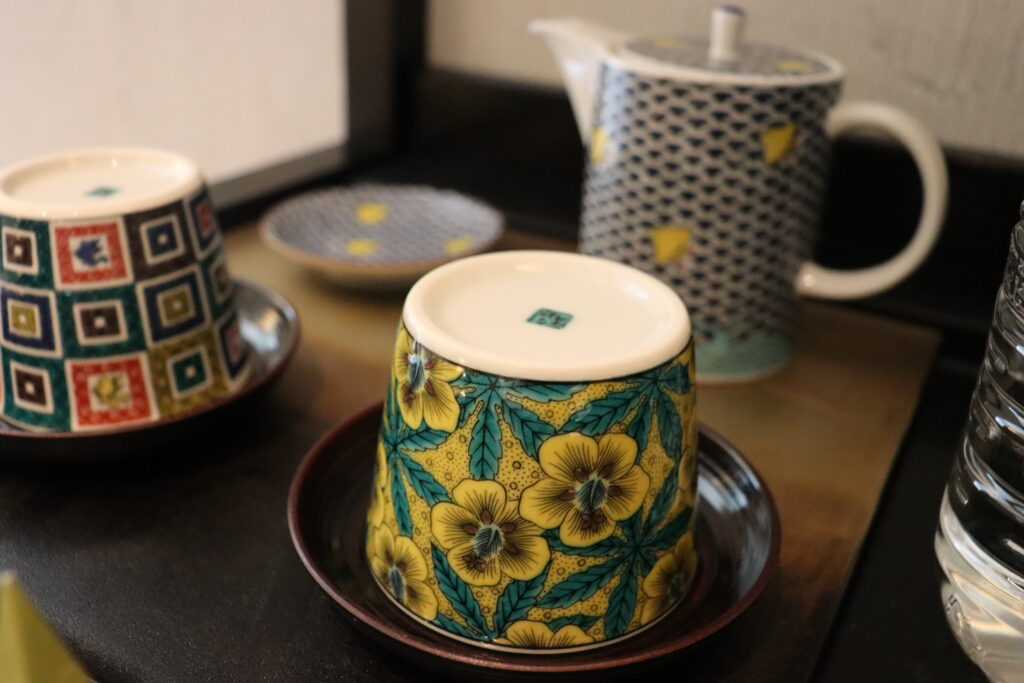 湯呑みや急須も金沢っぽい絵柄で、高級感がありました。