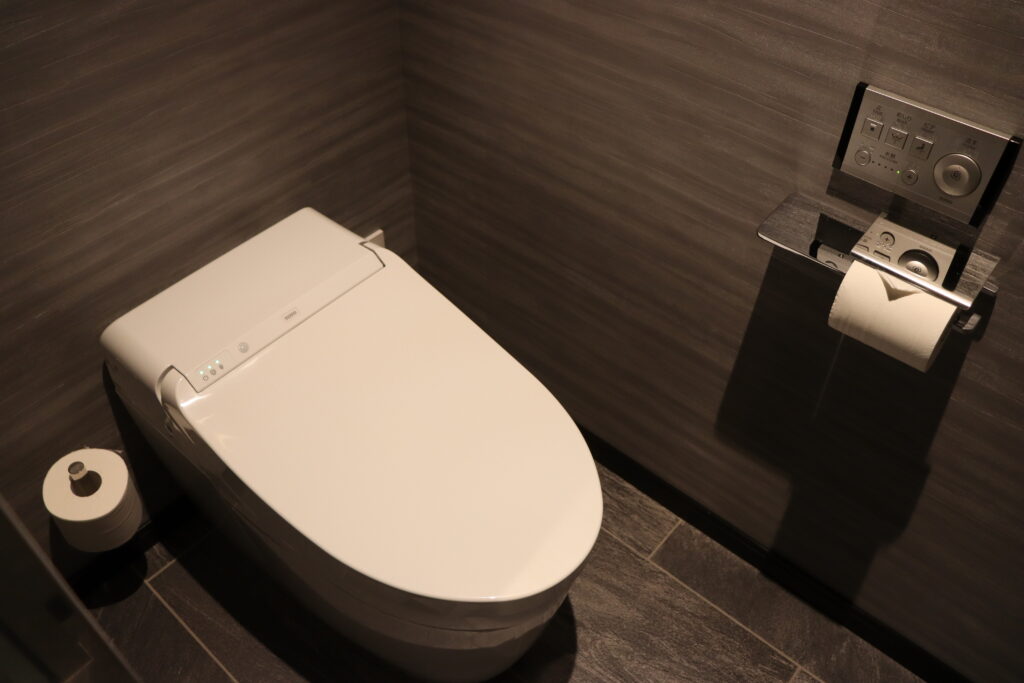 トイレや洗面台エリアの床は石のような硬いタイルになっていたので、赤ちゃんが転ばないように注意が必要です。