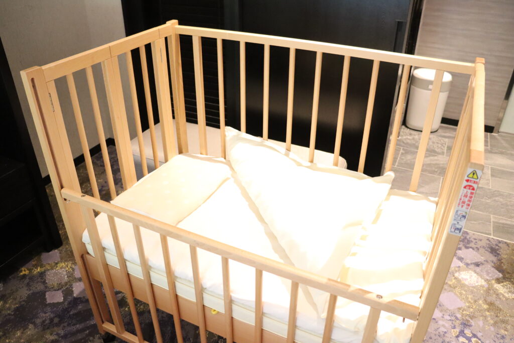 娘をベビーベッドの中に入れると出してくれと大泣き。