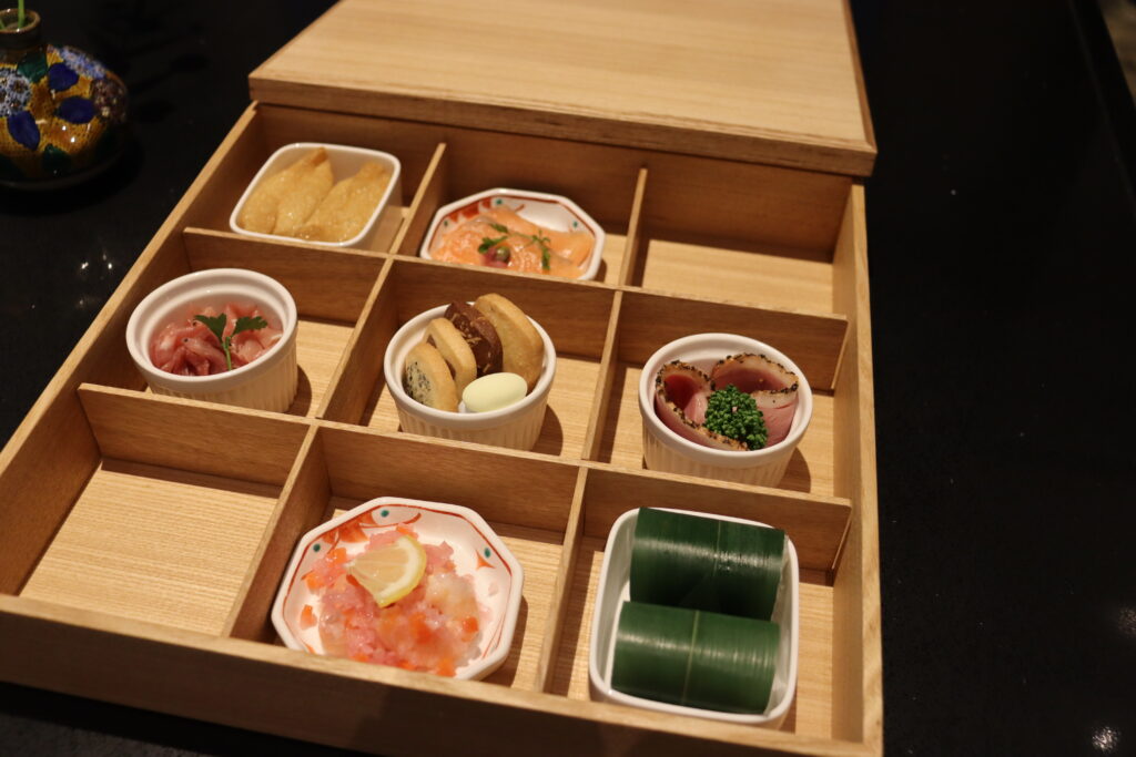 客室での軽食を希望の場合、スタッフに依頼すると一部の料理を箱詰めにしたファミリープレートを用意してもらうことが可能です。