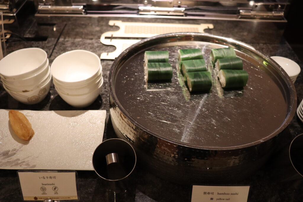 金沢で有名な押し寿司「笹寿司」。笹の葉で包んでありました。